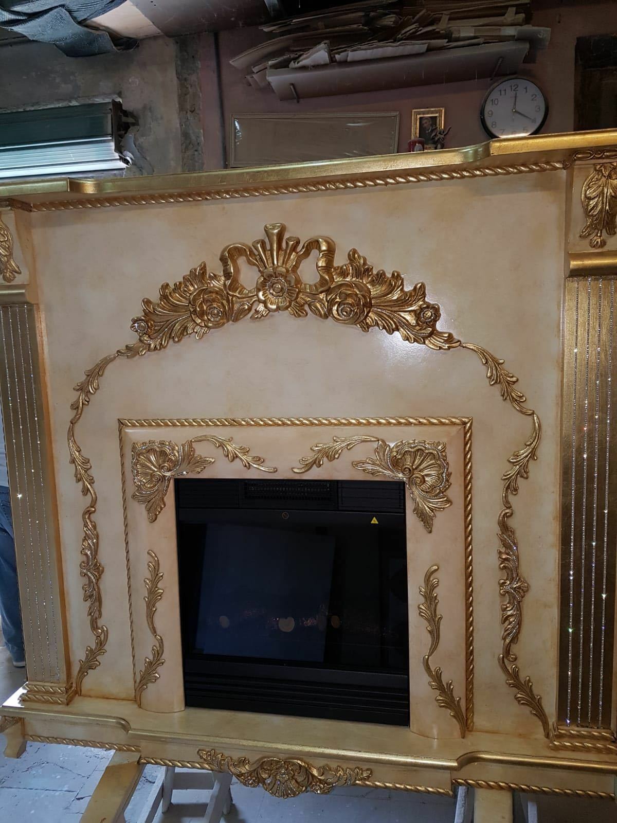 CAMINETTO ELETTRICO AVORIO E FOGLIA ORO CON CRISTALLI ARREDO CASA CAMINO