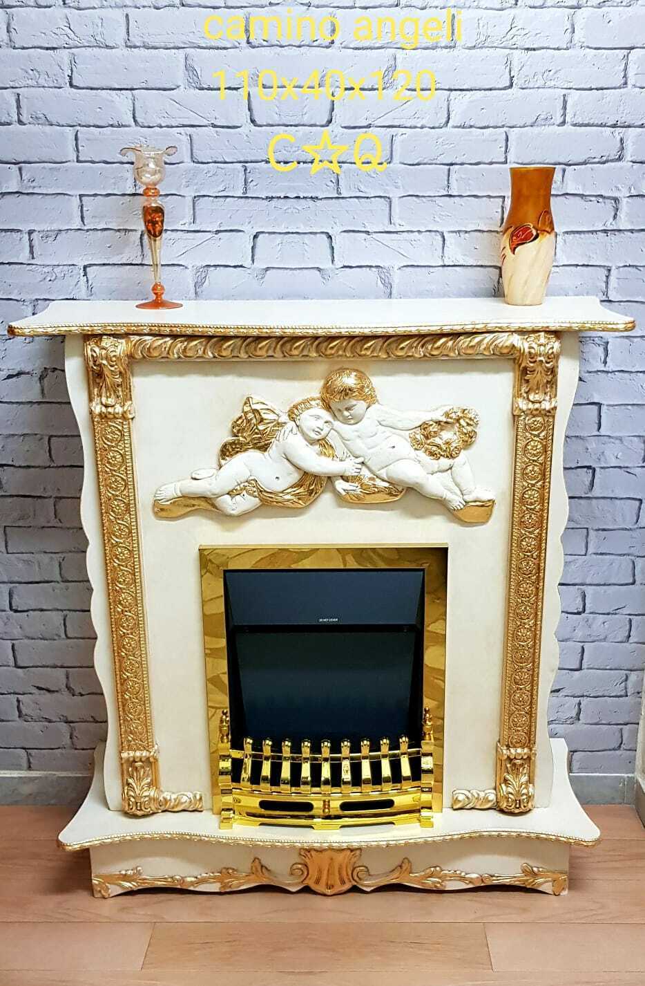 CAMINETTO ELETTRICO AVORIO E ORO CON ANGELI