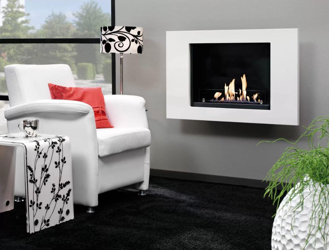 camino bioetanolo moderno da incasso cornice mdf bianca o nera GOYA