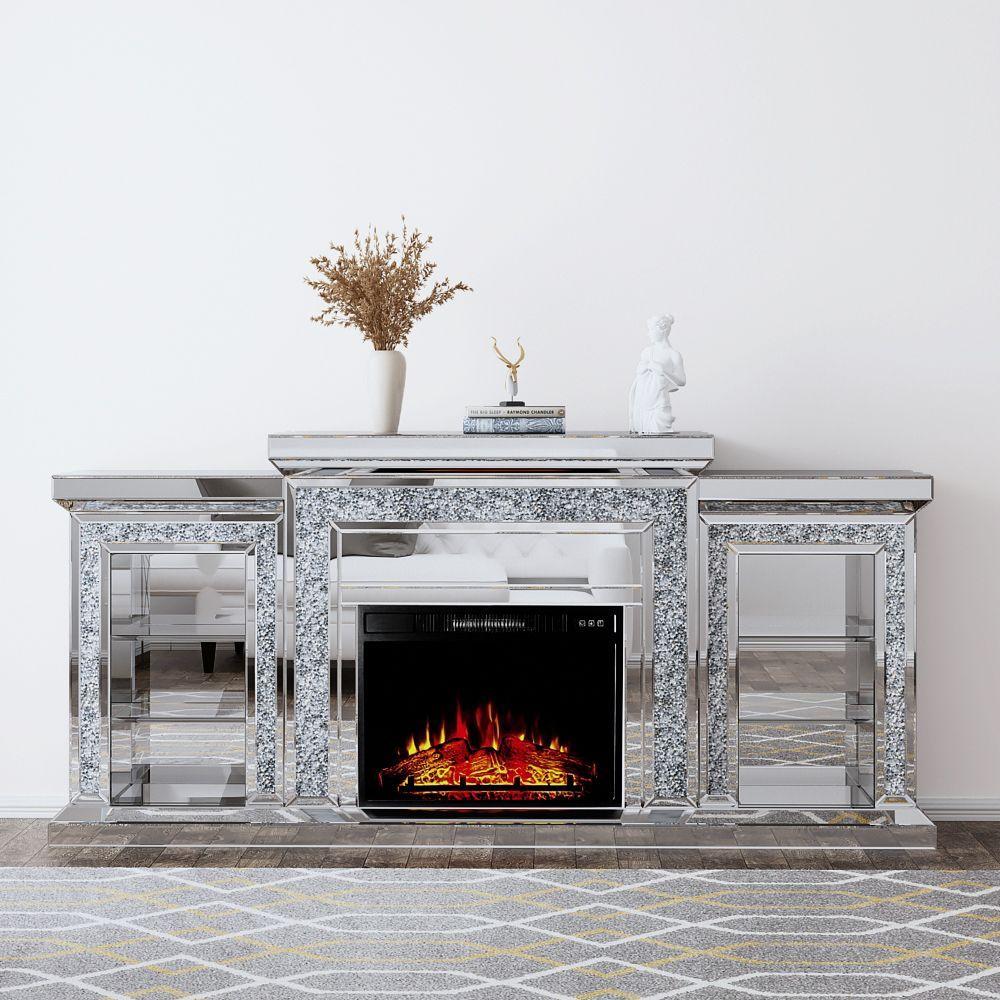camino elettrico in vetro specchiato con mensole laterali mis. L 194x100cm