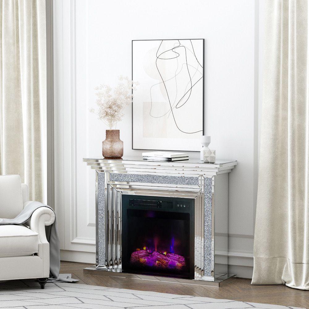 camino elettrico in vetro specchiato mis. L 120x99cm