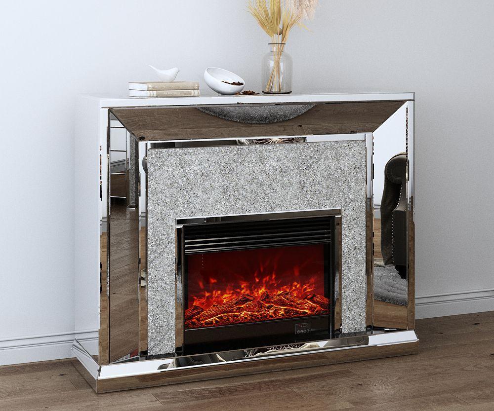 camino elettrico in vetro trasparente specchiato mis. L 120x100cm