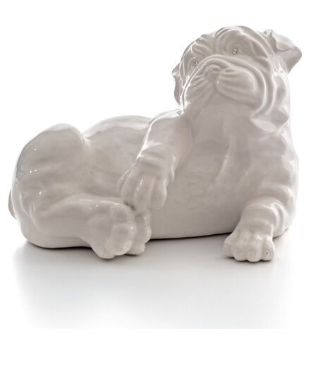 CANE BOXER BIANCO LUCIDO CERAMICA CRISTALLI ANIMALI ARREDO CASA SOGG. SALOTTO