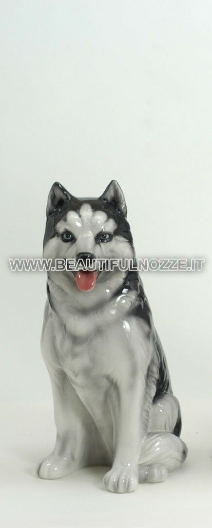 CANE HUSKY MEDIO IN CERAMICA BIANCO E GRIGIO ANIMALI ARREDO CASA