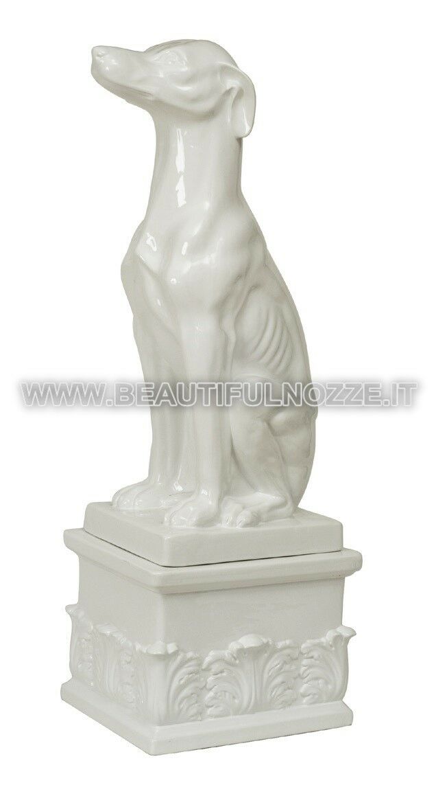 CANE LEVRIERE SEDUTO CON BASE IN CERAMICA BIANCA ANIMALI ARREDO CASA
