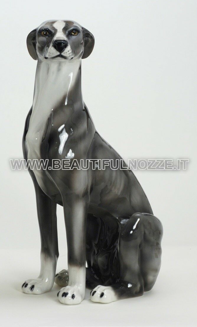 CANE LEVRIERE SEDUTO IN CERAMICA GRIGIO ANIMALI LEONE PUMA PANTERA ARREDO CASA