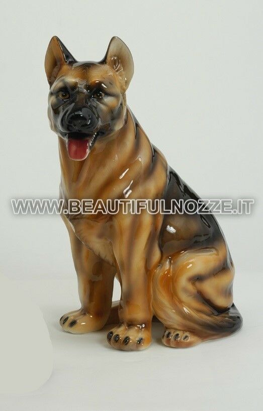 CANE LUPO MEDIO SEDUTO IN CERAMICA NERO E MARRONE ANIMALI ARREDO CASA