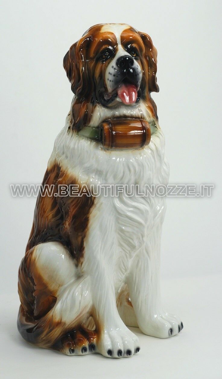 CANE SAN BERNARDO SEDUTO IN CERAMICA COLORATA ANIMALI ARREDO CASA