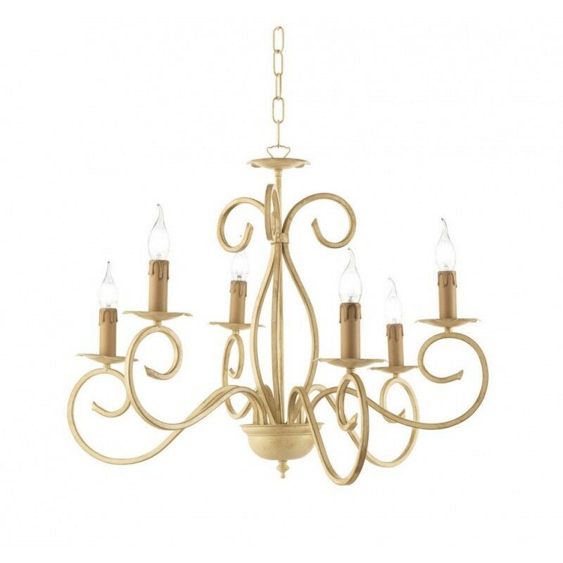CARRARA LAMPADARIO SOSPENSIONE IN FERRO BATTUTO AVORIO O BRONZO 6 LUCI CASA