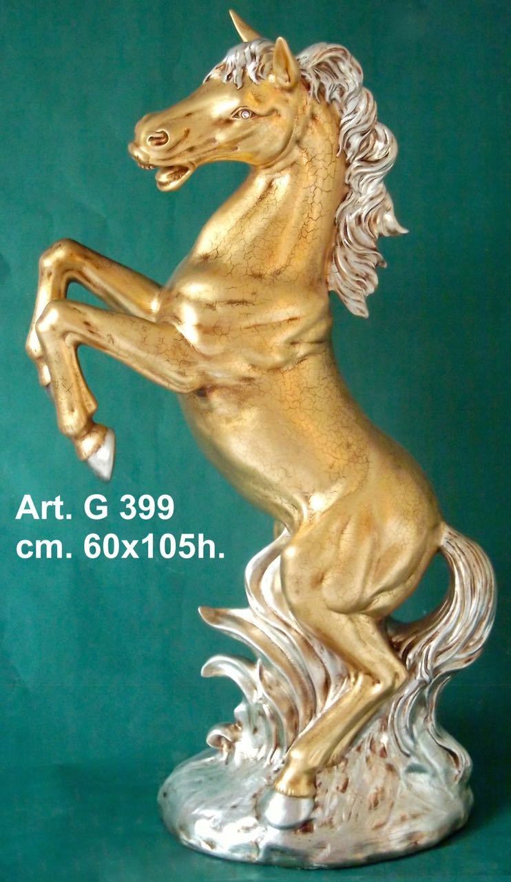 CAVALLO GRANDE IN CERAMICA DECORO FOGLIA ORO E ARGENTO CON OCCHI IN CRISTALLO