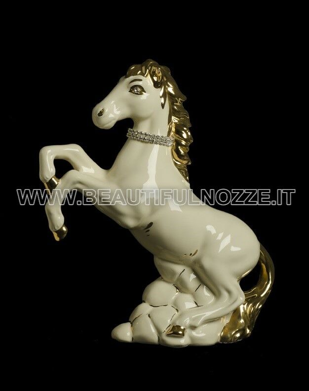 CAVALLO SU 2 ZAMPE IN CERAMICA CREMA E ORO CON CRISTALLI SWAROVSKI ANIMALI