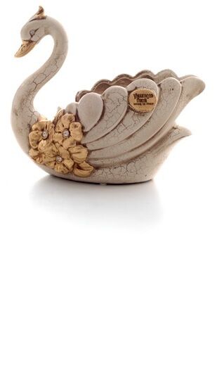 CIGNO STILOS AVORIO ORO CERAMICA CRISTALLI ANIMALI ARREDO CASA SOGG. SALOTTO