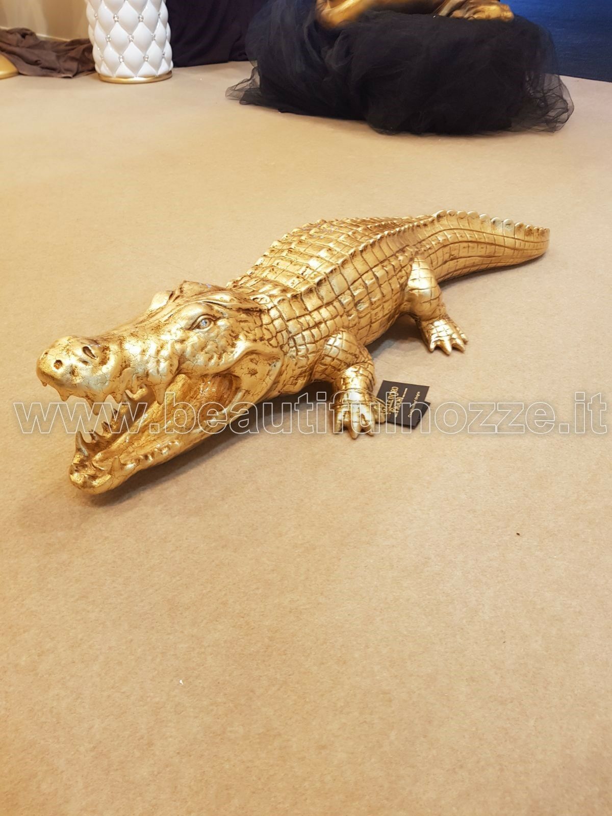COCCODRILLO IN CERAMICA FOGLIA ORO CON CRISTALLI STRASS
