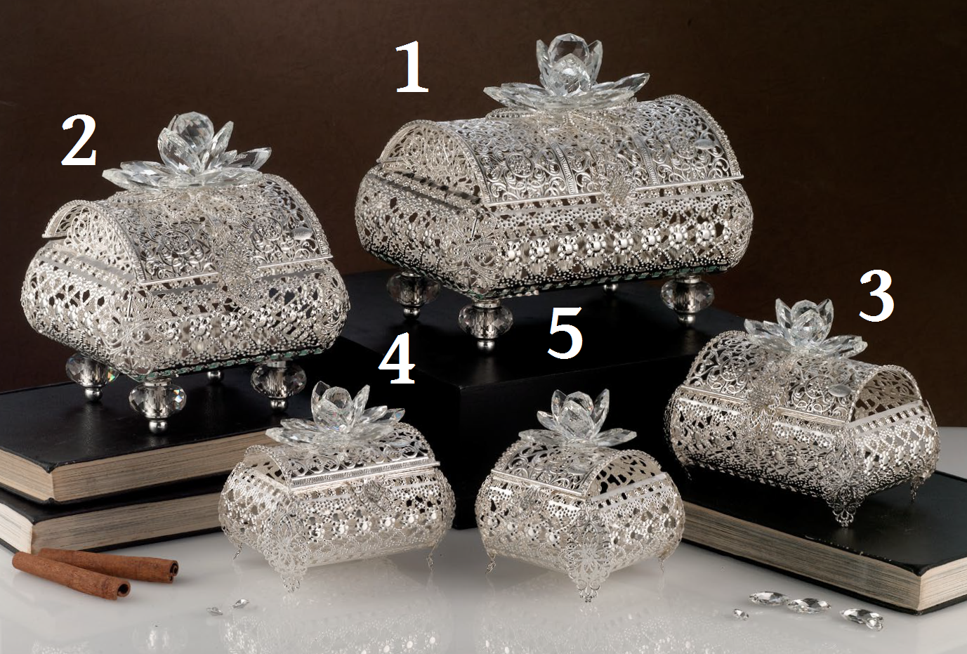 COFANETTO DECORO BAGNO ARGENTO CON CRISTALLI VARIE MISUREI