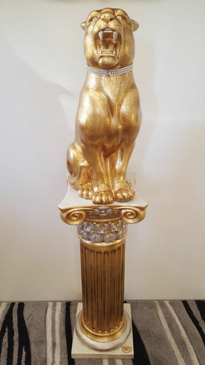 COLONNA CARAPIE CON PANTERA IN CERAMICA AVORIO FOGLIA ORO E FOGLIA ARGENTO