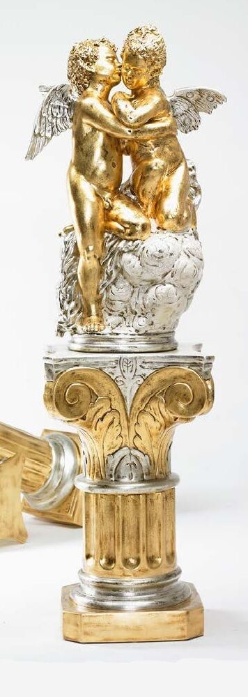 COLONNA CON ANGELI INNAMORATI SULLE NUVOLE IN CERAMICA FOGLIA ORO ARGENTO STATUA