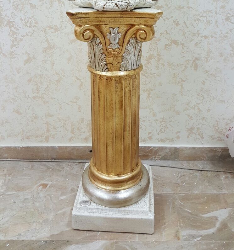 COLONNA IN CERAMICA DECORO AVORIO FOGLIA ORO ARGENTO SCULTURA ARREDO CASA STATUA
