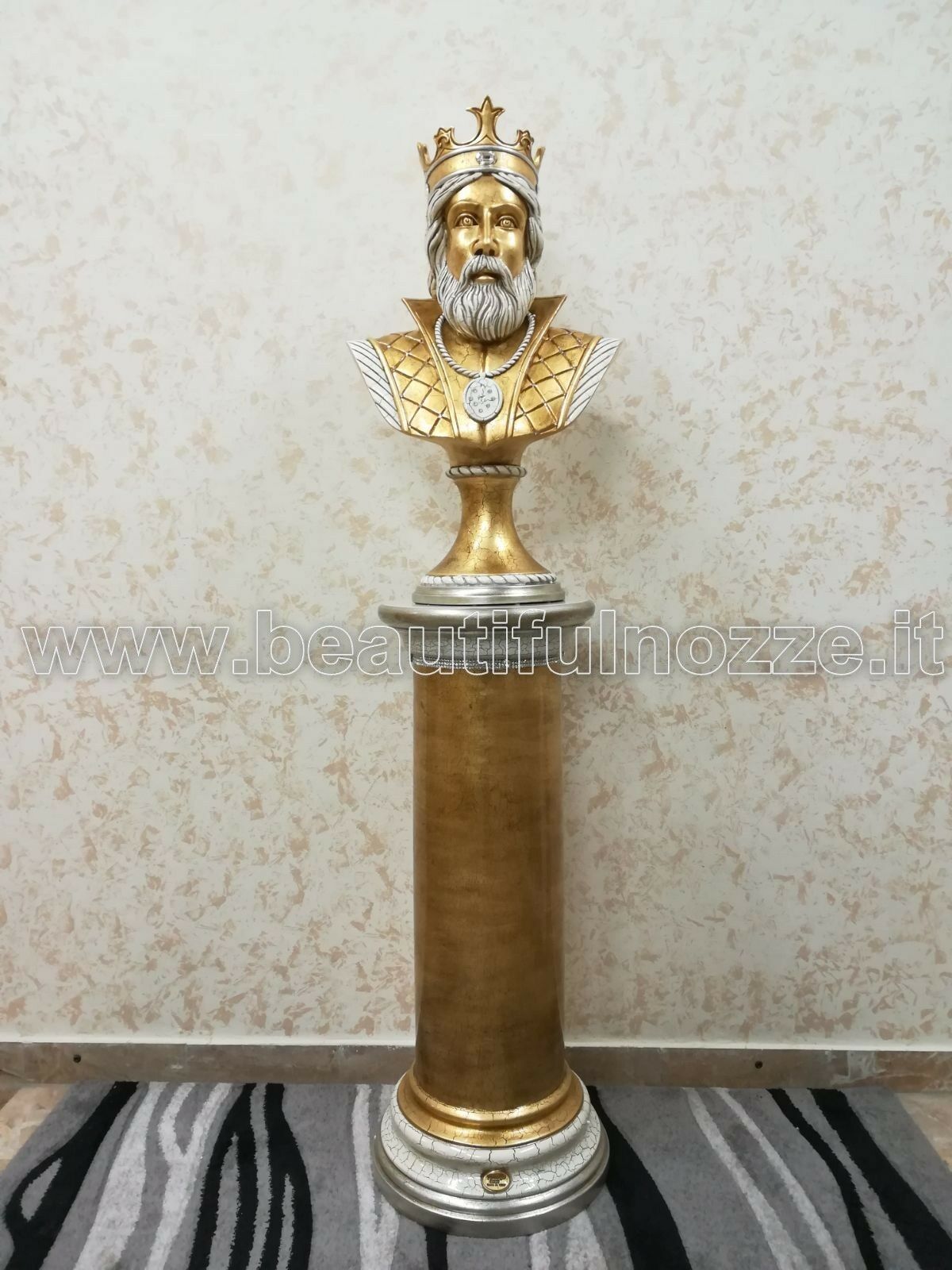 COLONNA PER SOVRANI CON RE IN CERAMICA FOGLIA ORO AVORIO E ARGENTO CON CRISTALLI