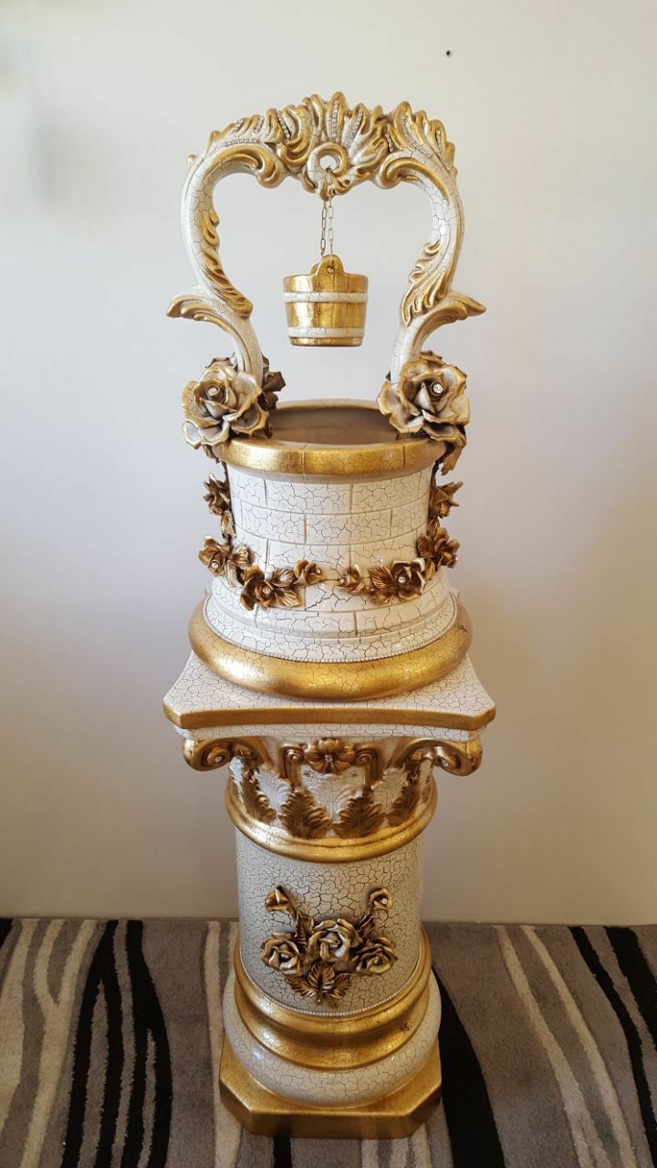COLONNA + POZZO IN CERAMICA FOGLIA ORO AVORIO CRAQUET CON FIORI E CRISTALLI