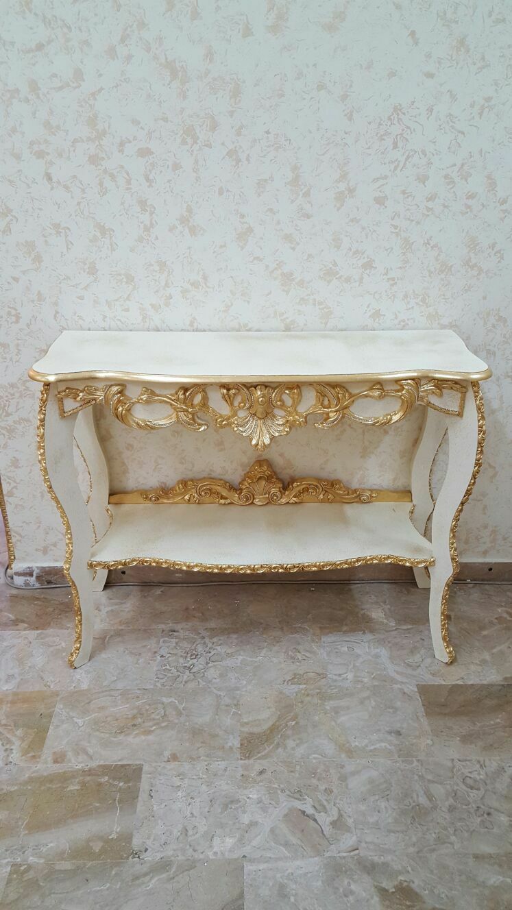 CONSOLLE IN LEGNO AVORIO E FOGLIA ORO CON CRISTALLI MOBILI SALOTTO SOGGIORNO