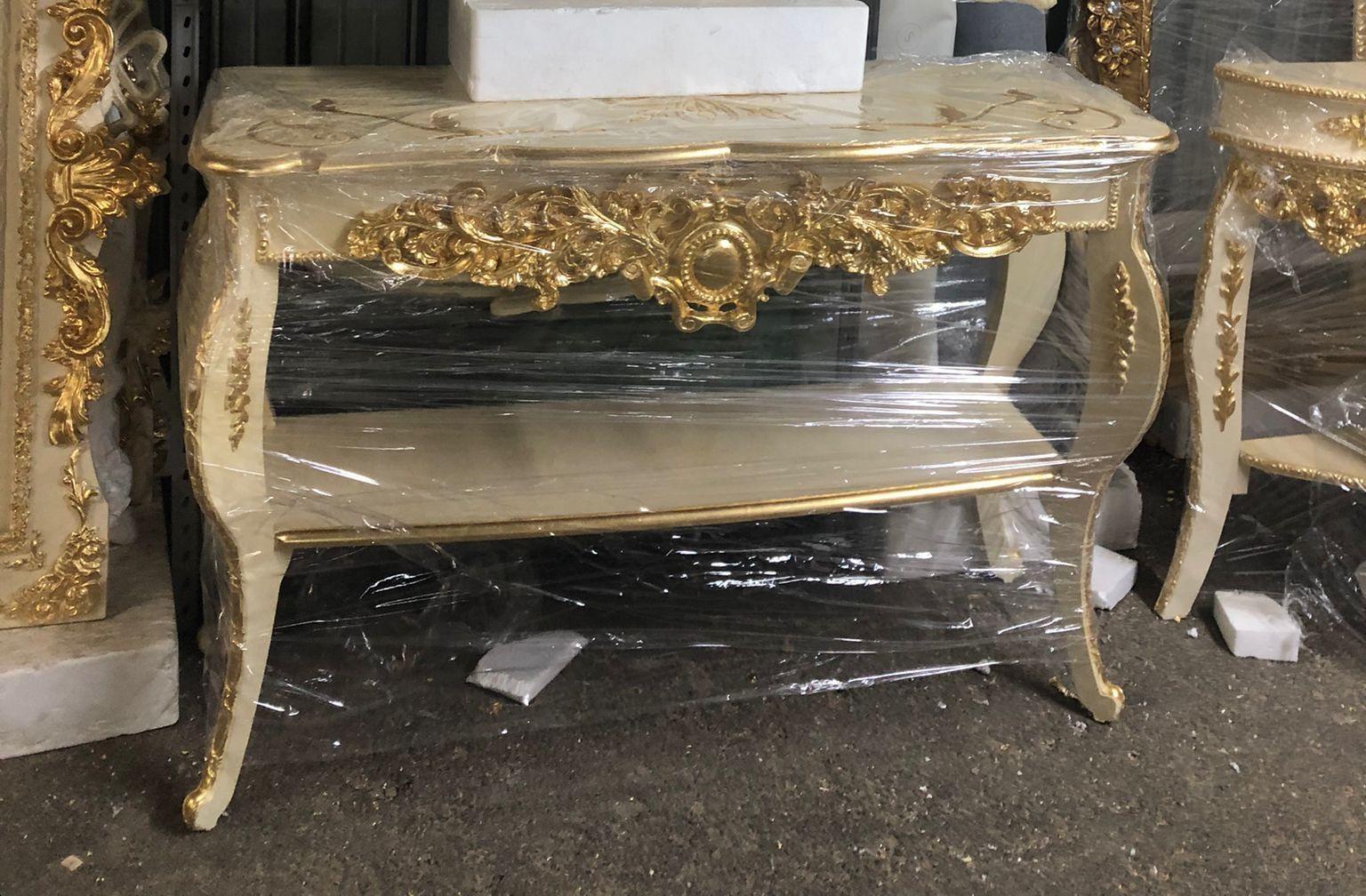 CONSOLLE IN LEGNO DECORO AVORIO E ORO ENTRATINA SOGGIORNO ARREDO CASA