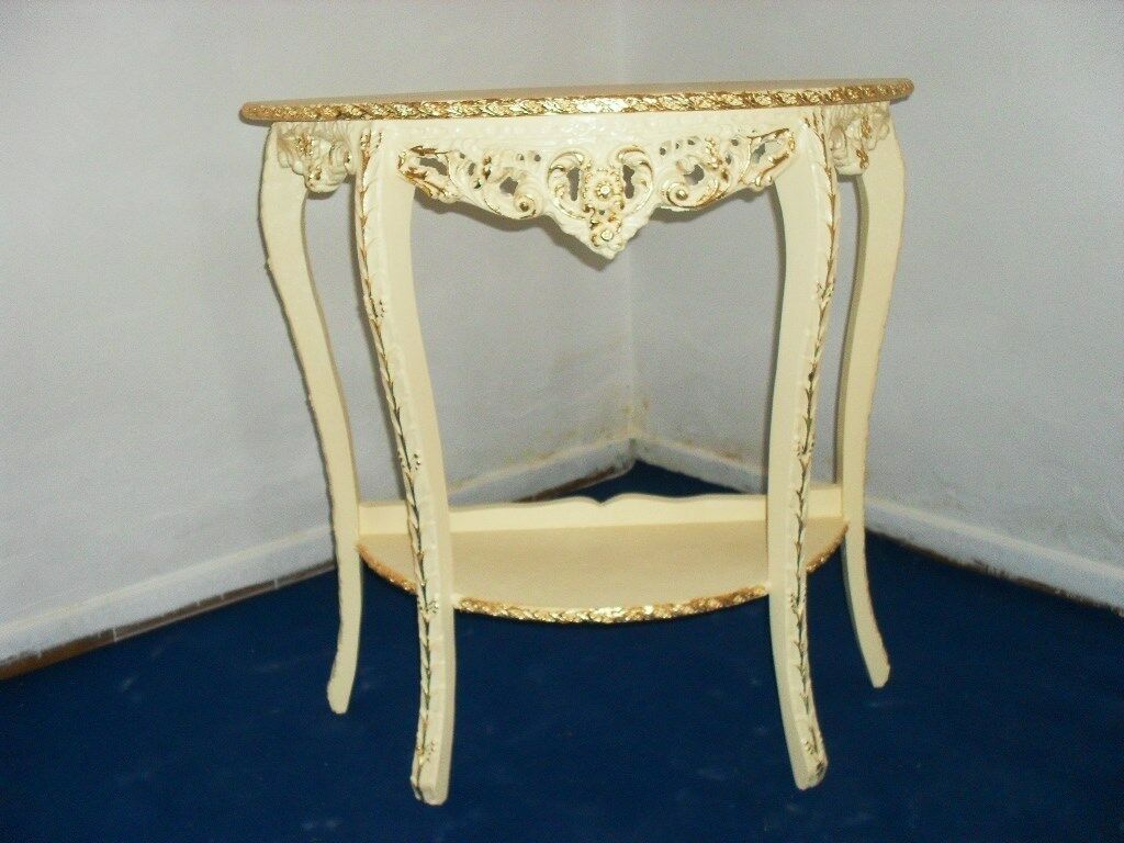 CONSOLLE IN LEGNO DECORO AVORIO ORO ENTRATINA SOGGIORNO ARREDO CASA