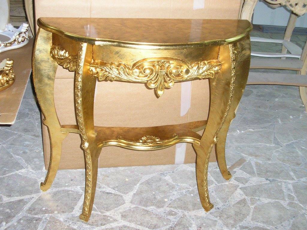 CONSOLLE IN LEGNO DECORO FOGLIA ORO ENTRATINA SOGGIORNO ARREDO CASA