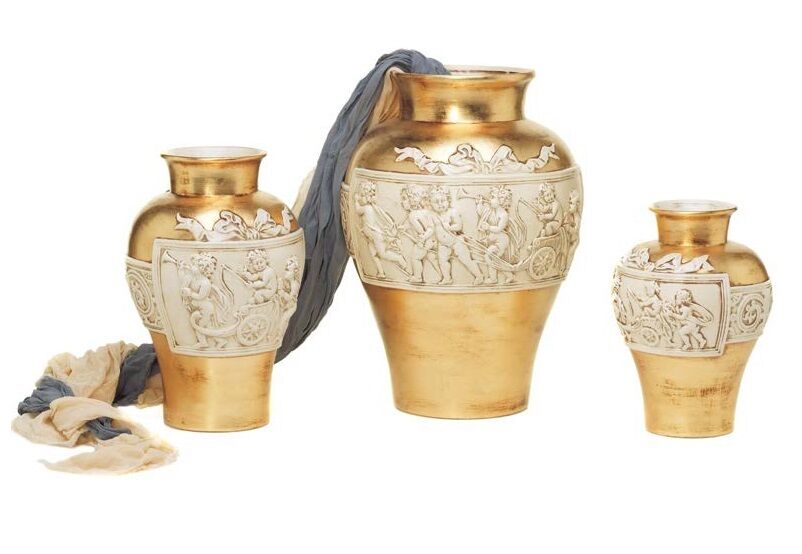 COPPIA CACHEPOT VASI PICCOLO MEDIO E GRANDE CON PUTTI ANGELI IN RILIEVO
