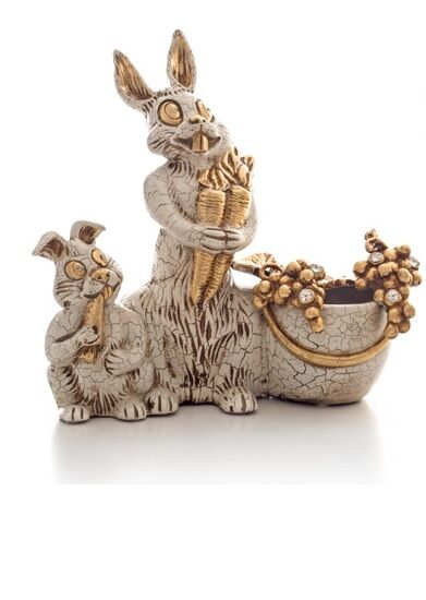 COPPIA CONIGLI AVORIO ORO CERAMICA CRISTALLI ANIMALI ARREDO CASA SOGG. SALOTTO