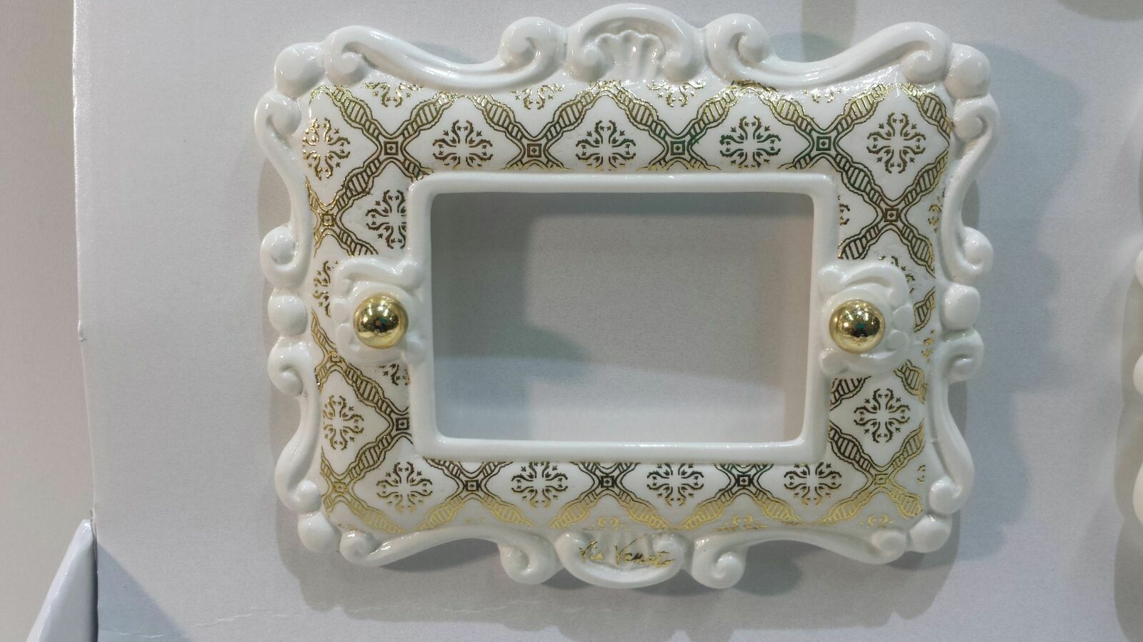COPRI INTERRUTTORI 3 PULSANTI PLACCHETTE VIA VENETO CERAMICA PERLA FOGLIA ORO