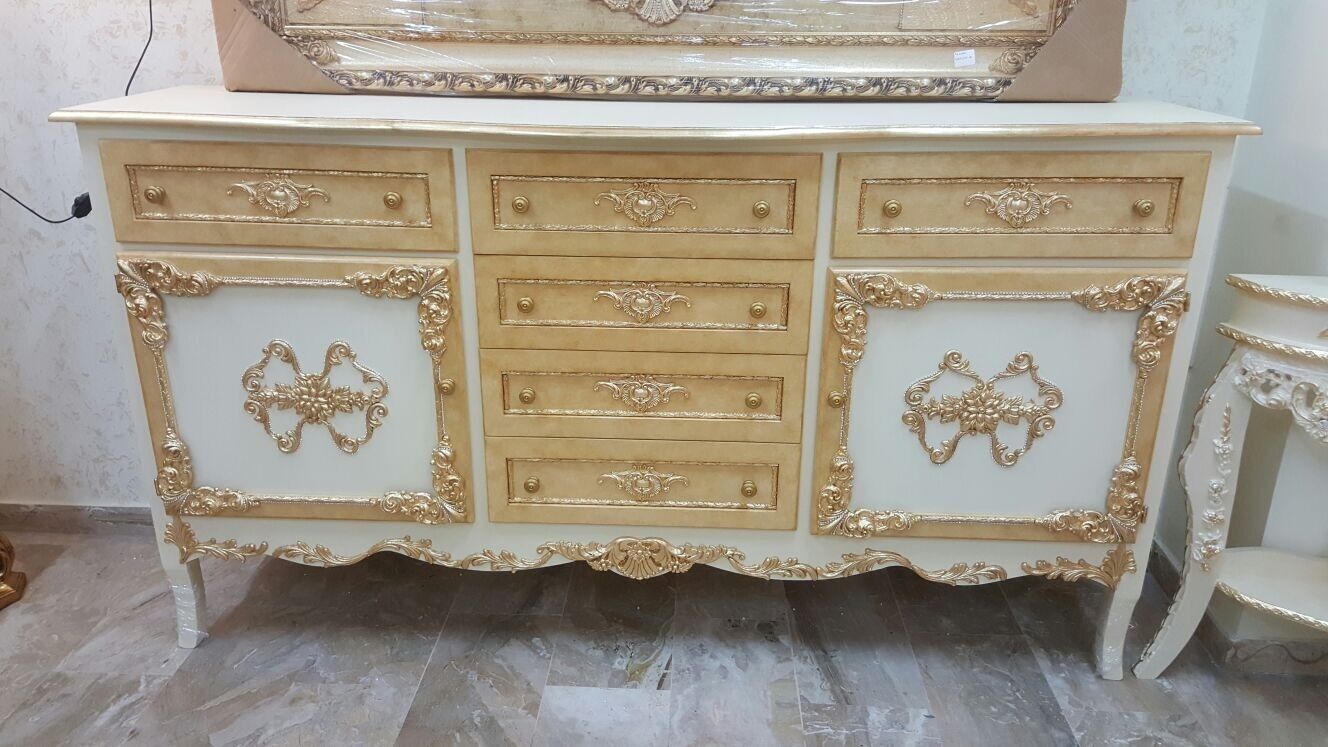 CREDENZA CREDENZONE MOBILE LEGNO DECORO AVORIO E ORO 2 SPORTELLI 6 CASSETTI