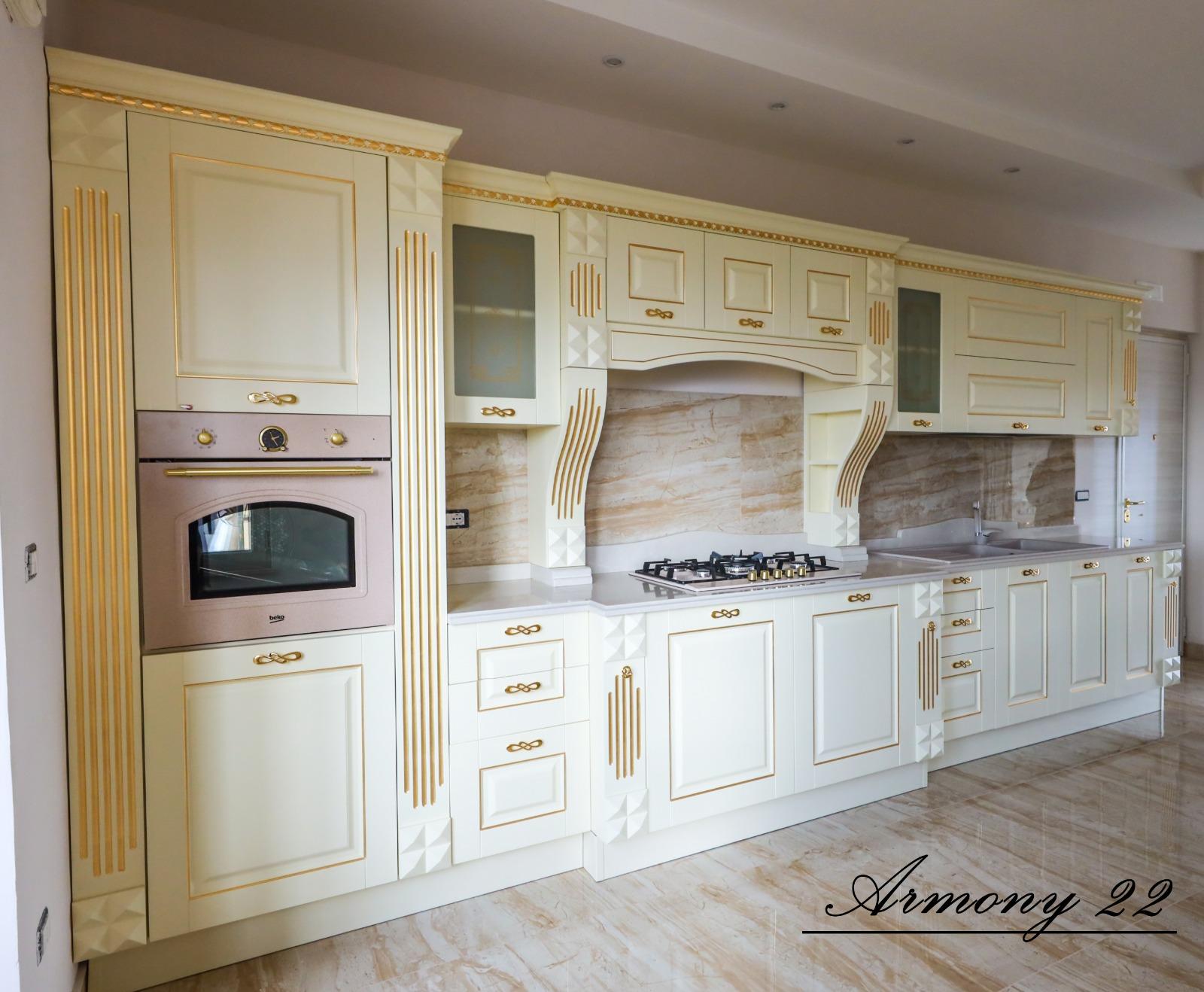 cucina componibile su misura avorio con finiture oro decoro armony 22