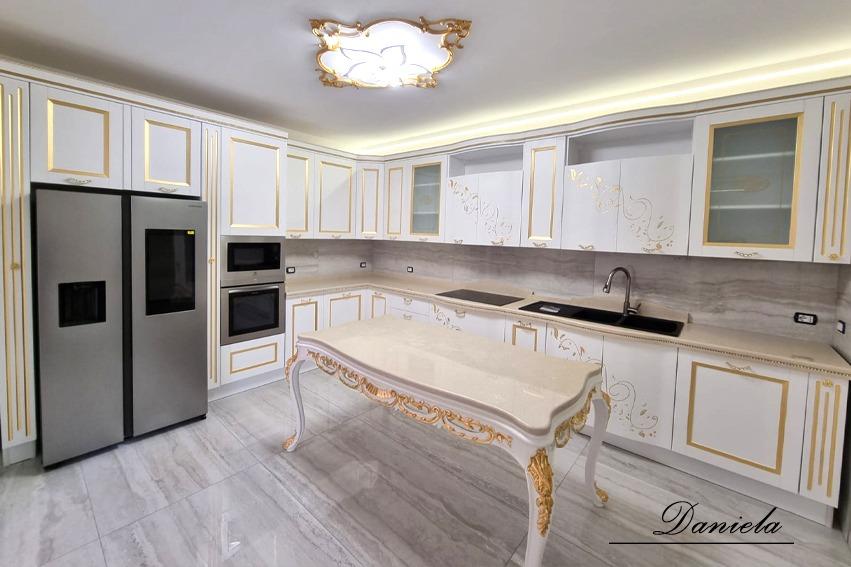 cucina componibile su misura avorio con finiture oro decoro daniela