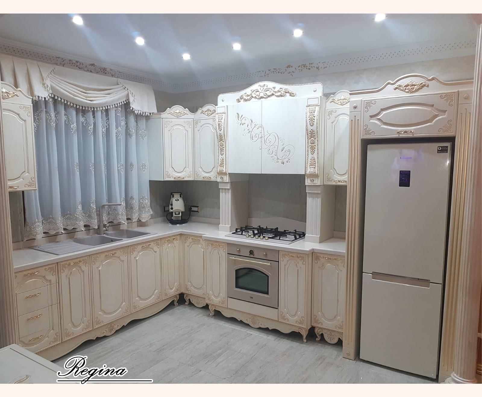 cucina componibile su misura avorio con finiture oro decoro regina
