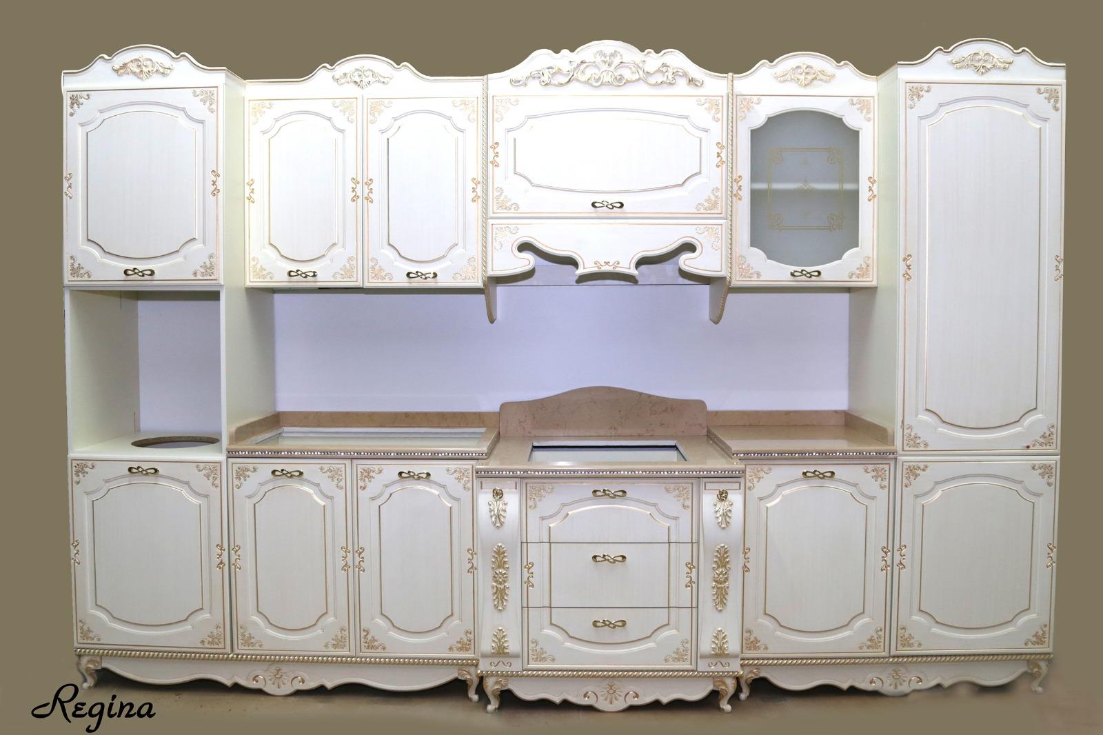 cucina componibile su misura avorio con finiture oro decoro rosy regina