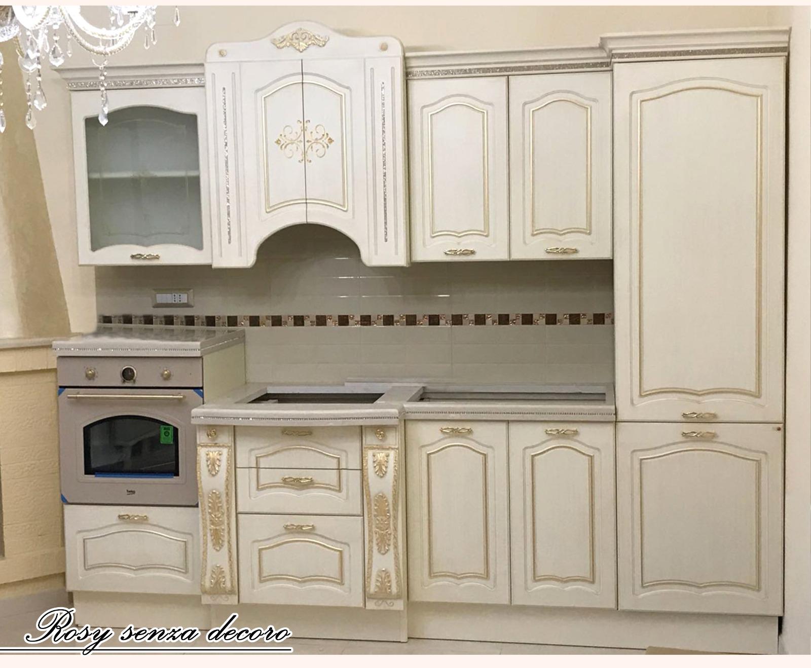 cucina componibile su misura avorio con finiture oro decoro rosy senza decoro