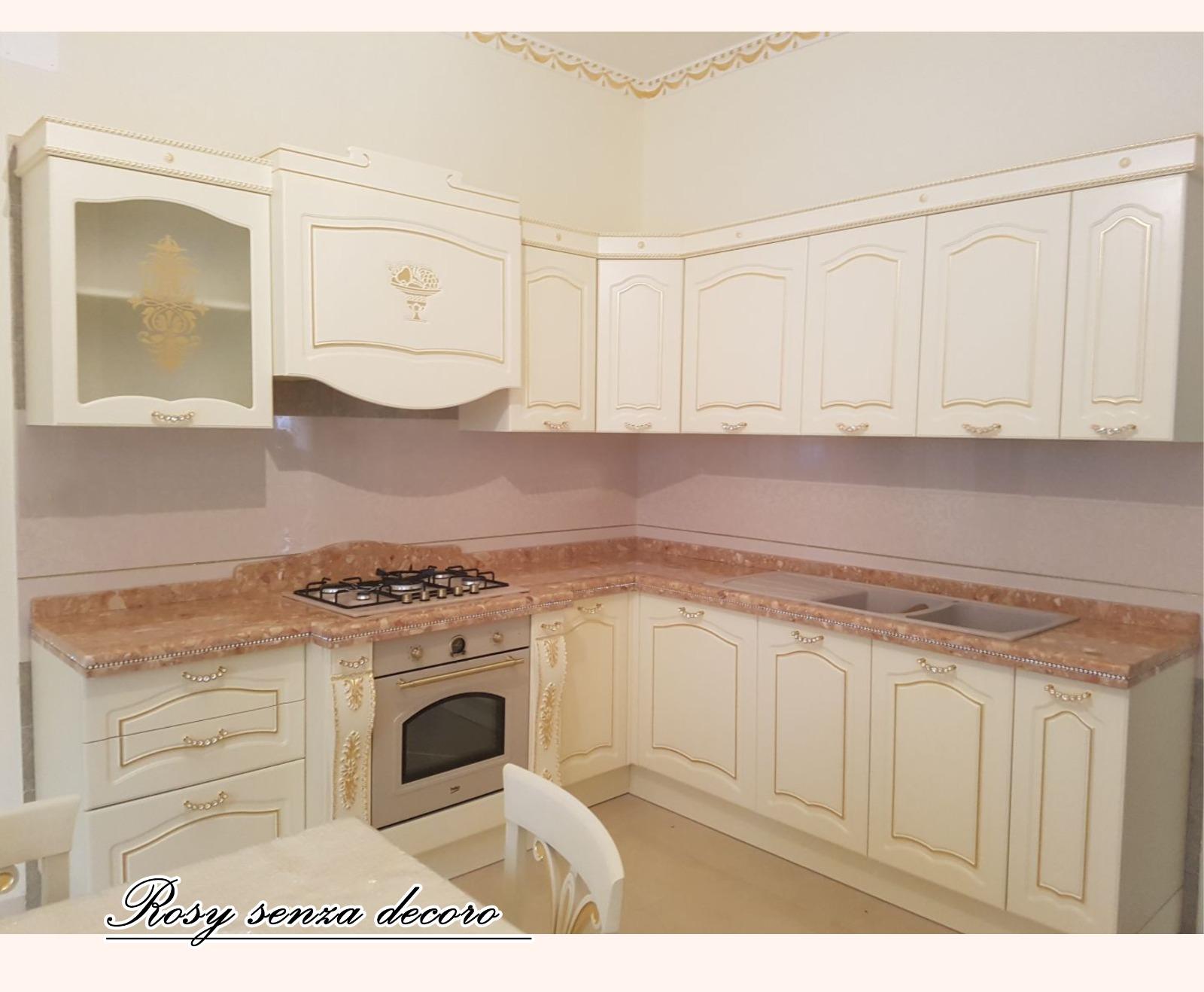 cucina componibile su misura avorio con finiture oro decoro rosy senza decoro