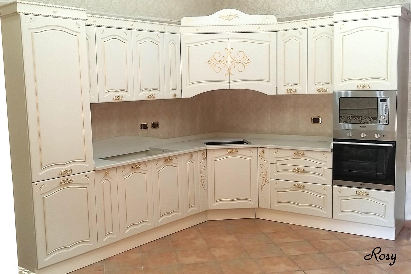 cucina componibile su misura avorio con finiture oro decoro rosy