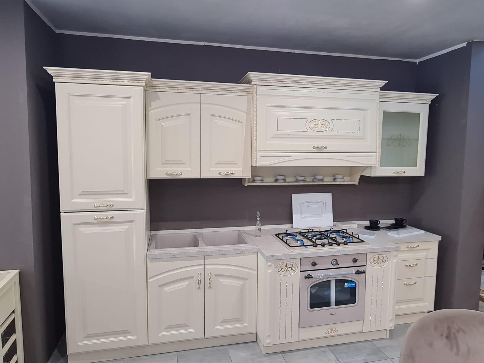 cucina componibile su misura avorio e decoro oro con strass incassati