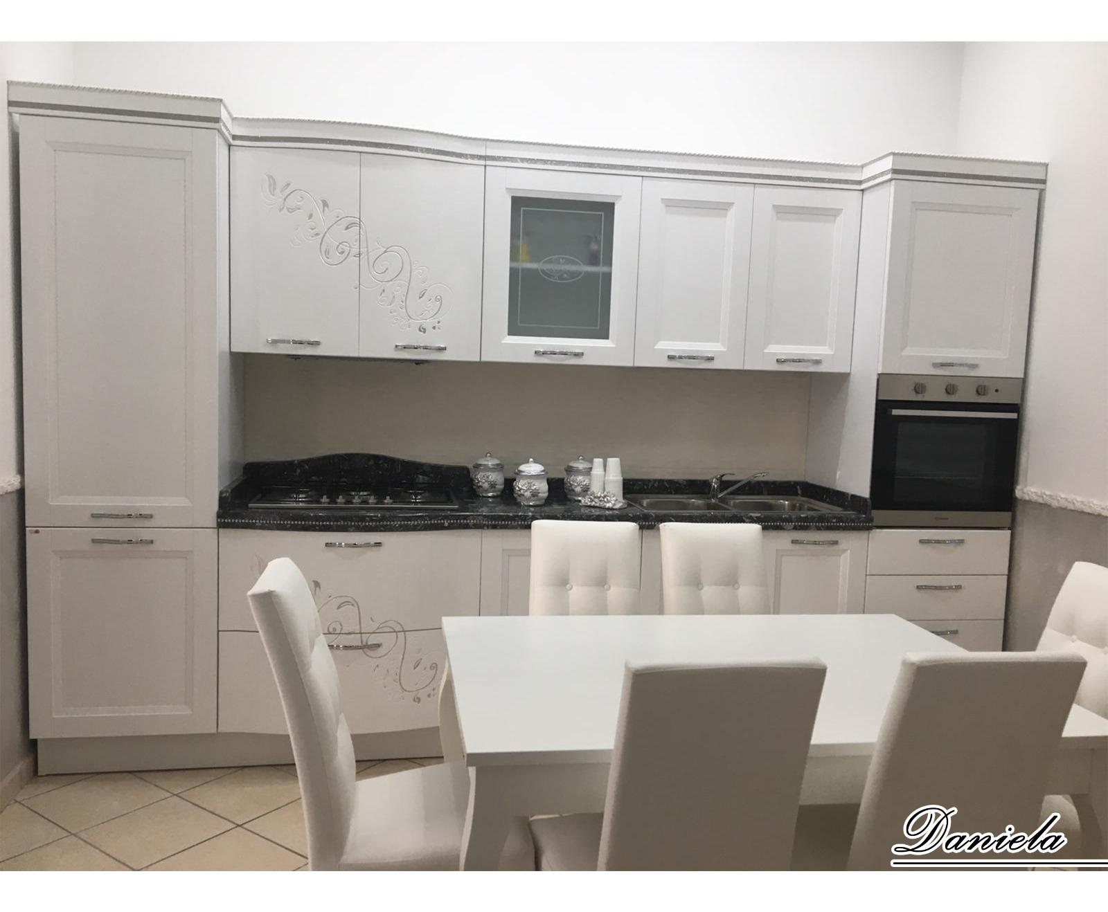 cucina componibile su misura bianca con finiture argento decoro daniela