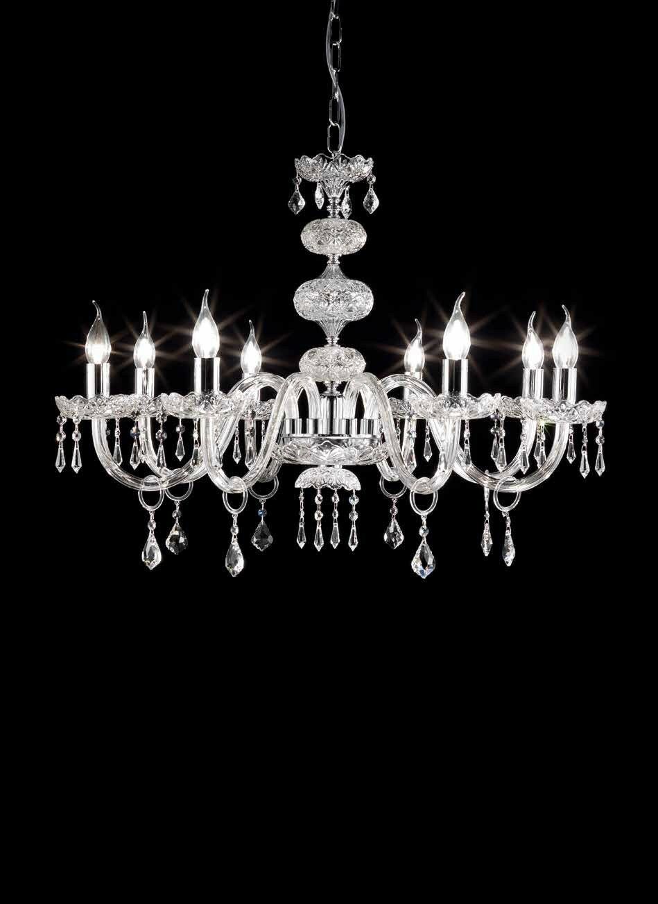 DALLAS LAMPADARIO IN VETRO CRISTALLO TRASPARENTE E FINITURE CROMO 8 LUCI