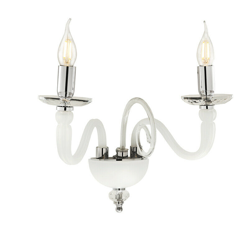DEBUSSY APPLIQUE 2 LUCE IN VETRO LAVORATO A MANO BIANCO SATINATO E METALLO