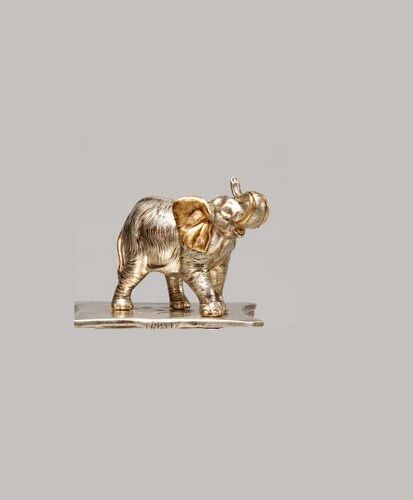 ELEFANTE AFRICANO PICCOLO IN CERAMICA FOGLIA ORO ARGENTO STATUA SCULTURA