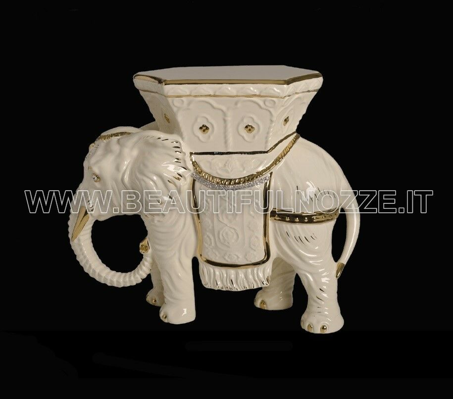ELEFANTE GRANDE IN CERAMICA CREMA E ORO CON CRISTALLI SWAROVSKI ANIMALI