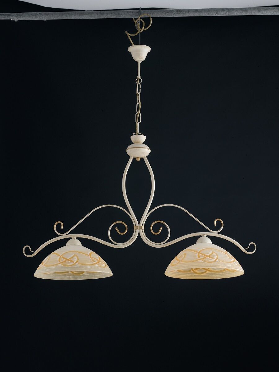 FARAONE LAMPADARIO STRUTTURA IN FERRO BATTUTO COLORE AVORIO 2 LUCI