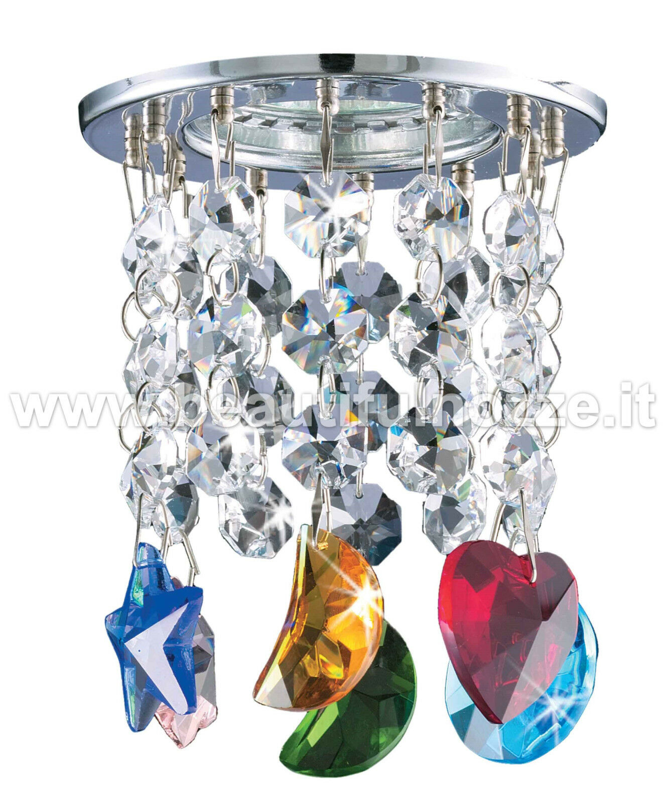 FARETTO AD INCASSO IN METALLO ORO O CROMO LUCIDO CON CRISTALLI TRASPARENTI E TERMINALI DI DIVERSE FORME MULTICOLORE