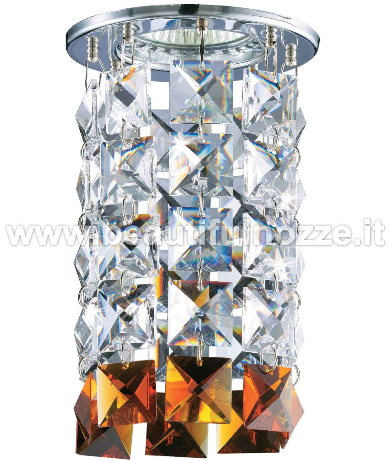 FARETTO AD INCASSO IN METALLO ORO O CROMO LUCIDO CON CRISTALLI TRASPARENTI QUADRATI E TERMINALI QUADRATI DI DIVERSI COLORI