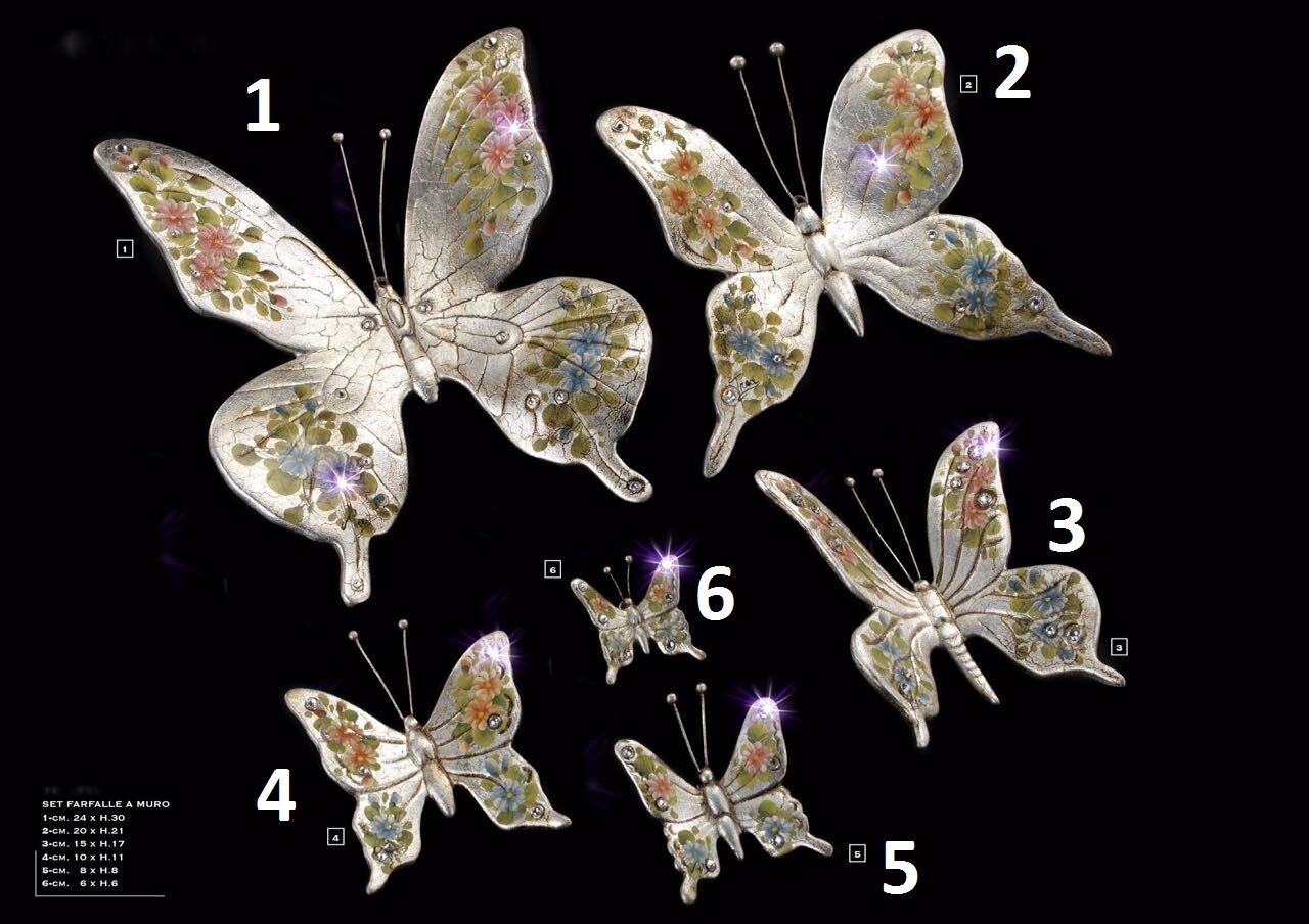 FARFALLE IN CERAMICA DECORO FOGLIA ARGENTO CON FIORI E CRISTALLI ARREDO CASA