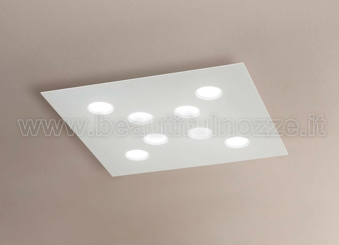 FLET PLAFONIERA QUADRATA GRANDE IN ALLUMINIO SATINATO BIANCO 8 LUCI