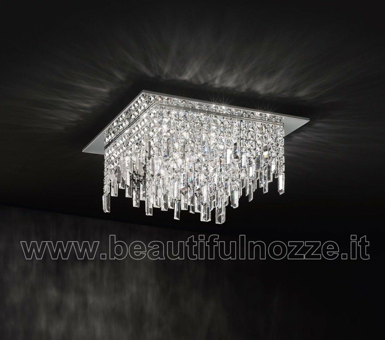 PLAFONIERA QUADRATA GRANDE CON CRISTALLI A MATTONELLA E CRISTALLO FINALE A LOSANGA
